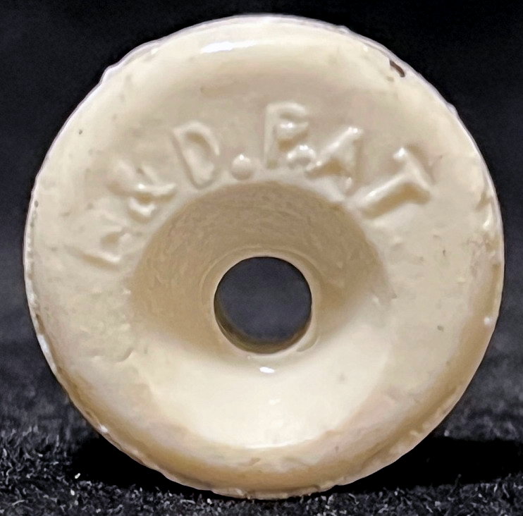 PATENT APPLIED FOR (circle on top) | r-e | 699,761 | 1-5/8" diameter; 1-1/2" tall; patent is May 13, 1902; lightning rod insulator | |