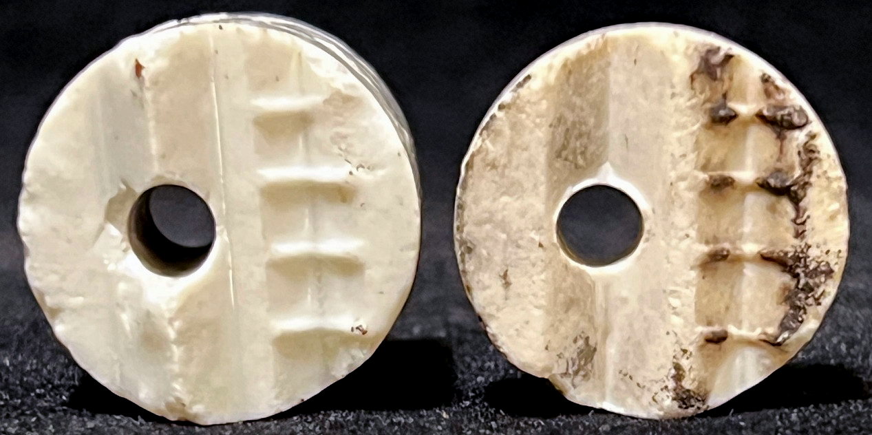C / 800 / C (dot inside each C) | emb | 1-1/8" diameter, unglazed | ||